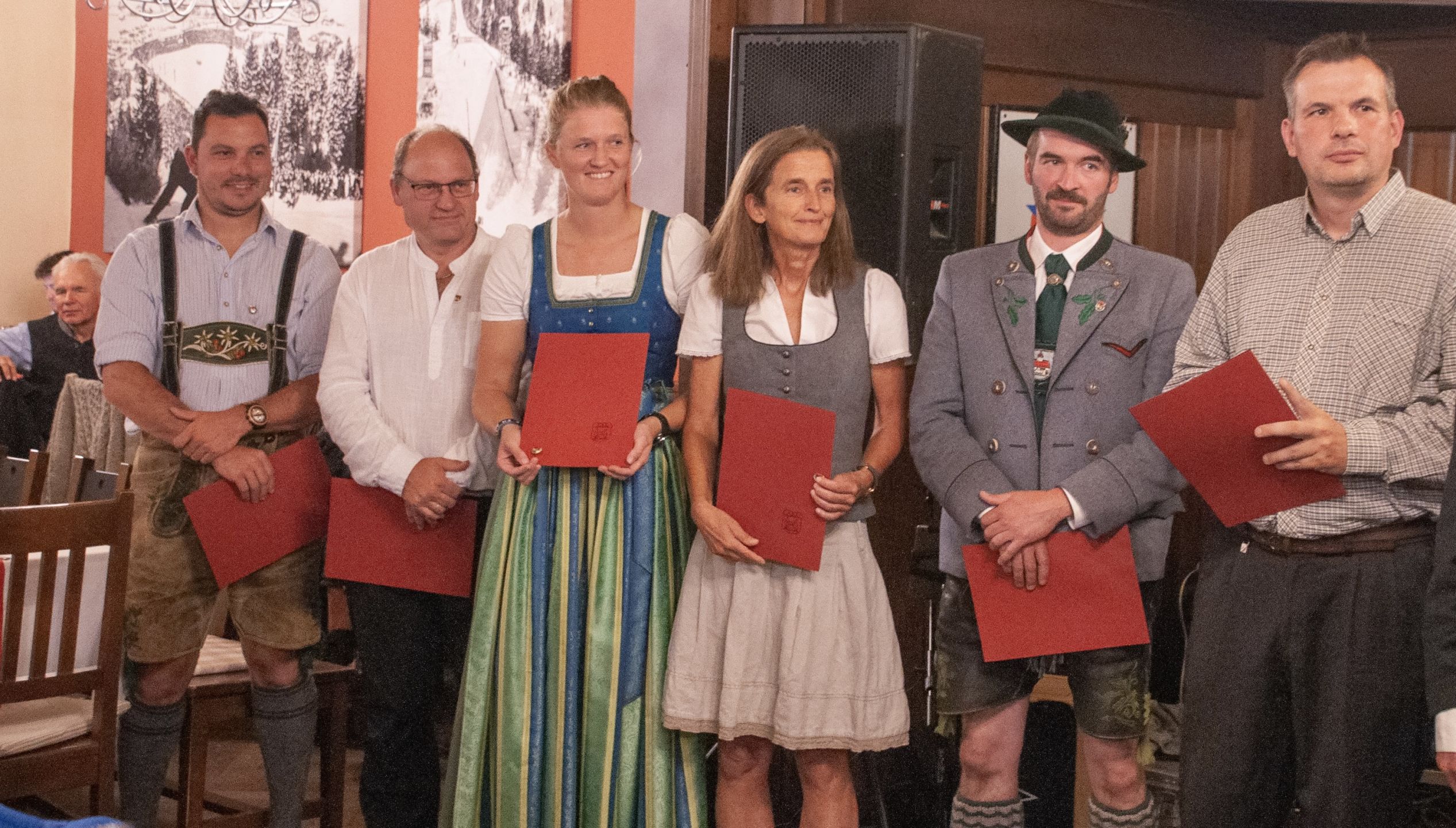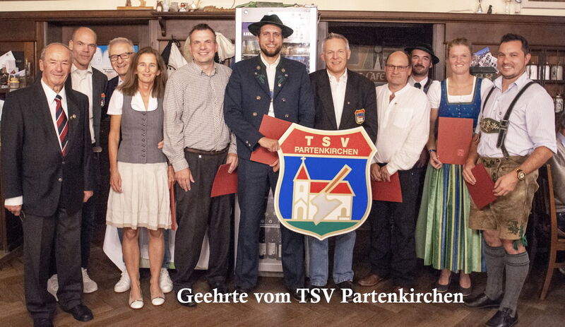 In der Tat erschienen die Vertreter der Partenkirchner Ortsvereine zahlreich. Vom Patenverein TV Garmisch, dem SC Partenkirchen bis hin zum VTV Werdenfelser Heimat. Für viele dieser Vertreter stellte der TSV Partenkirchen den Einstieg ins Sportleben dar, ehe man sich spezialisierte und dafür auch andere Vereine aufsuchte. Für einige andere ist der TSVP allerdings Heimat geblieben, was am vielfältigen Sportprogramm liegt. 15 Abteilungen mit fast 1800 Mitgliedern beherbergt der Verein – im Landkreis einmalig. Für den Blick in die Vergangenheit war dann wieder Moderator und TSVP-Ehrenvorstand Hostmann zuständig, der unterhaltsam Historie und Gegenwart der einzelnen Sparten und des Hauptvereins präsentierte. Spätestens bei den Ehrungen wurde dann aber wieder klar, dass der Blick des TSV Partenkirchen in die Zukunft gerichtet ist. Mit der silbernen Ehrennadel zeichnete man Mitglieder aus, die schon länger im Verein engagiert sind, aber noch lange nicht ihren (Alters-)Zenit erreicht haben, so wie Franziska Kieweg, die im vergangenen Jahr noch selbst aktiv gewesen ist, sich aber in der LAG schon lange als Trainerin engagiert. Oder Handballer Franz Rieger, der mit 36 Jahren bereits auf eine stattliche Anzahl an trainierten Mannschaften zurückblicken kann. Florian Thieme, der nicht nur in der Abt. Handball für die Finanzen zuständig ist, sondern auch für den Hauptverein mittlerweile Sponsoren vermittelt. Einer wie Christoph Bartsack hält schon lange die Abteilung Badminton am Leben. Es gibt keinen Zweifel: Der Blick der Partenkirchner geht trotz aller Höhen und Tiefen nach vorne, was den BLSV-Bezirksvorsitzenden Steffen Enzmann, der extra aus Gröbenzell angereist war, fast frohlocken ließ: „Um den TSV Partenkirchen mache ich mir keine Sorgen.“