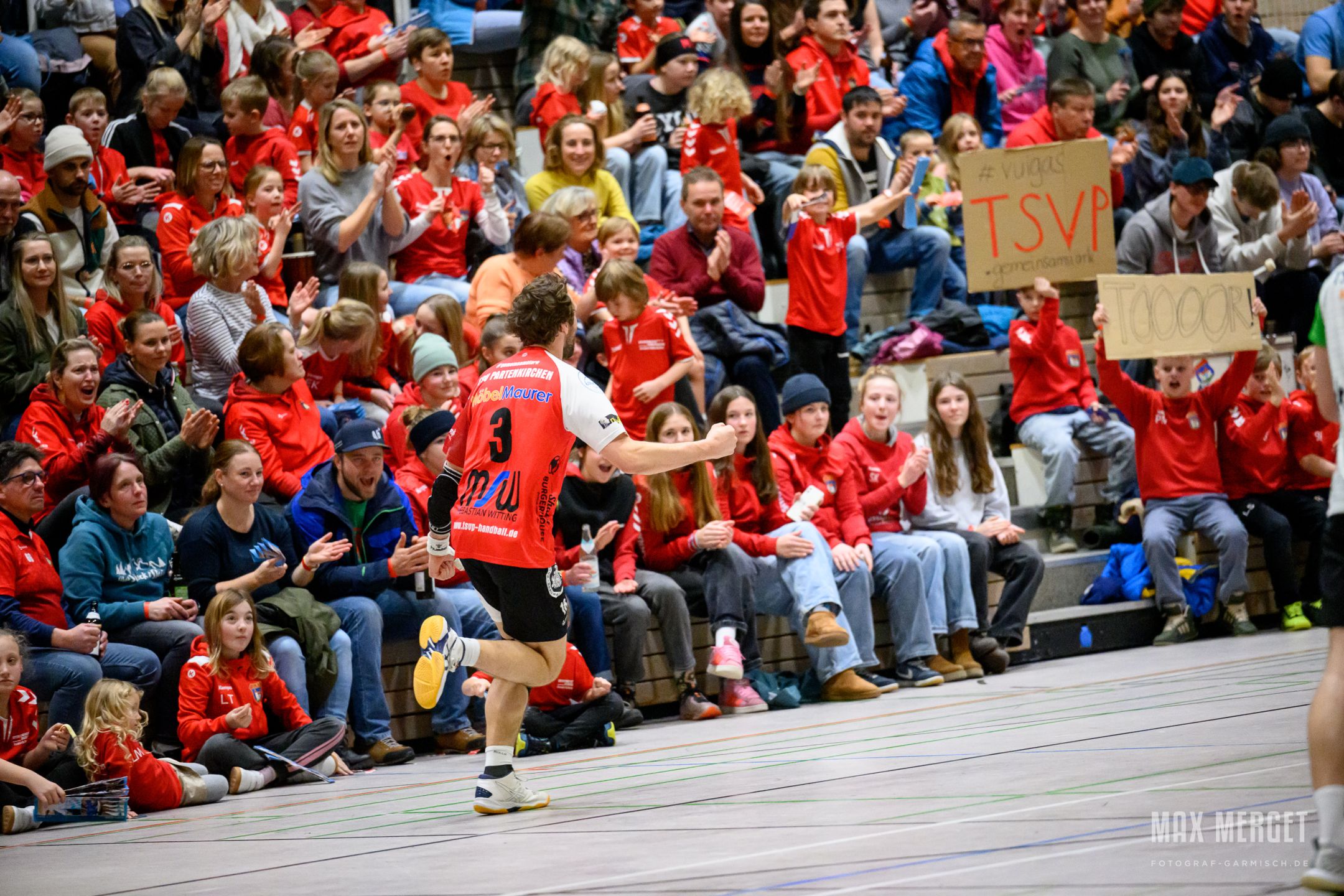 Die Geschichte des Spiels ist dadurch auch schnell erzählt. Bis auf das 1:1 (2.) konnte Murnau den Gastgebern kaum gefährlich werden. Schnell zog man davon, dabei setzt die Heimmannschaft durchaus das um, was Widenmayer im Vorfeld erwartet hatte. Aus einer kompakten Defensive heraus bestrafte man jeden Fehler der jungen Murnauer Mannschaft. Und wenn der Ball dann doch mal auf das Partenkirchner Tor kam, war Lucas Scheffler zur Stelle, der den ein oder anderen Gegenstoß einleitete. So war die Partie zur Halbzeit praktisch entschieden (18:9). Murnau fehlten nicht nur die Mittel im Angriff sondern auch die Abstimmung in der Abwehr. Im zweiten Spielabschnitt schonte Partenkirchens Cheftrainer nicht nur die Leistungsträger, auch seine Aktiven nahmen die Partie abschnittsweise ein wenig zu locker, was nicht unbedingt den ansehnlichsten Handball zur Folge hatte. Angesichts der hohen Zuschauerzahl nicht optimal und auch Widenmayer war nicht so erfreut, was er immer sah. Immerhin: Neuzugang Timo Kalaj kam zu seinen ersten zwei Treffern. "Er hat noch viel mehr drauf und braucht sicher noch Zeit, um hier anzukommen", meint der TSVP-Trainer. Treffsicher und konsequent war wiederum wieder Michel Neuhaus auf Linksaußen (11 Tore), während im Rückraum vor allem Ahmed Bouhamidi überzeugte.