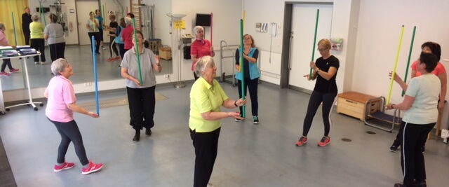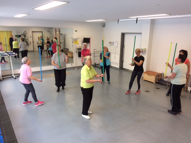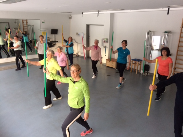Trainingszeit der Sportgruppe Mittwoch von 17.00 - 18.00 Uhr im Gymnastikraum der Physiotherapie Ebene 0 im Klinikum Garmisch-Partenkirchen, Übungsleiter: Edi Geigl und Julia Schweiger